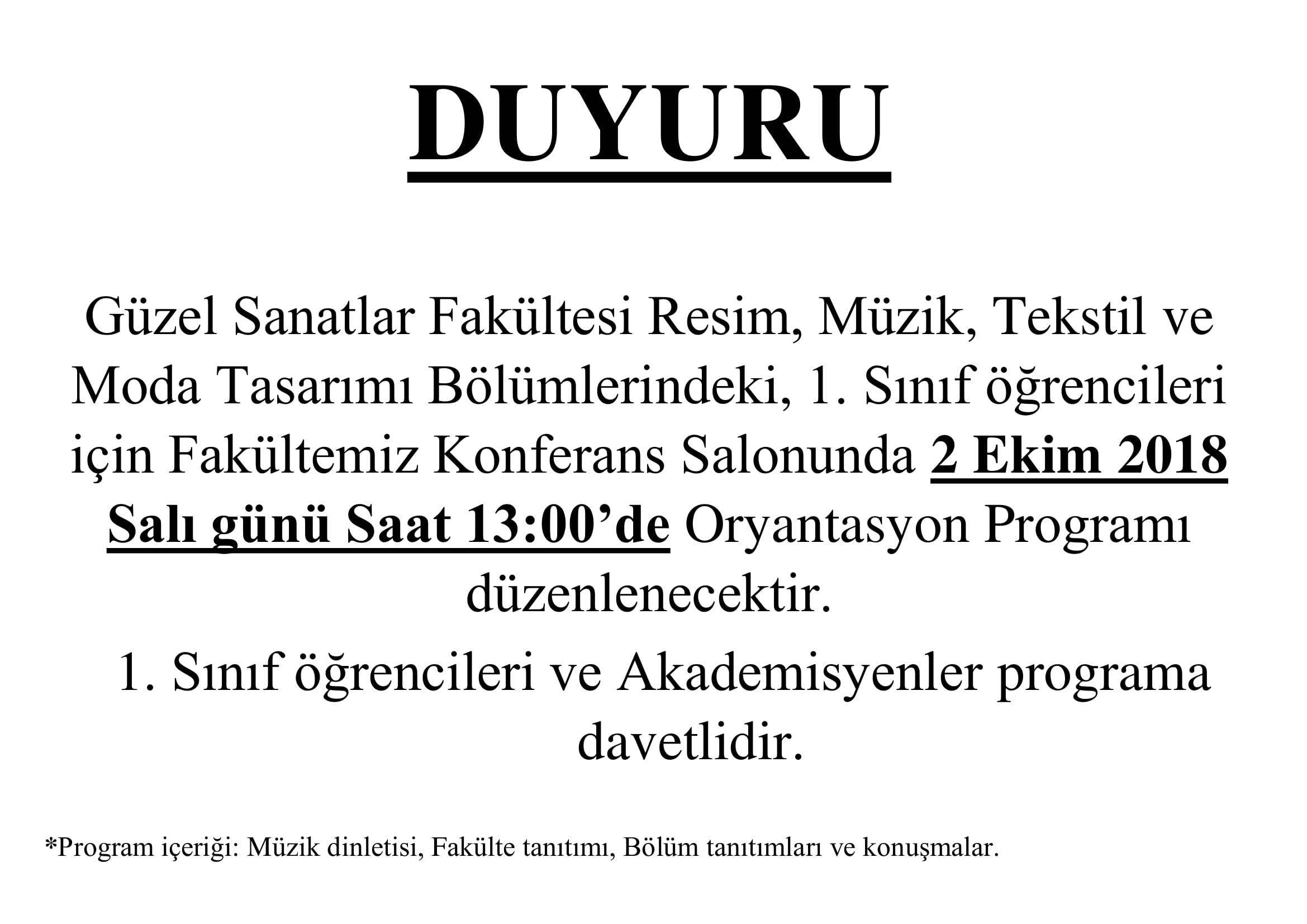 26.09.2018 - Fakültemiz 1. Sınıf Öğrencileri İçin Oryantasyon Programı
