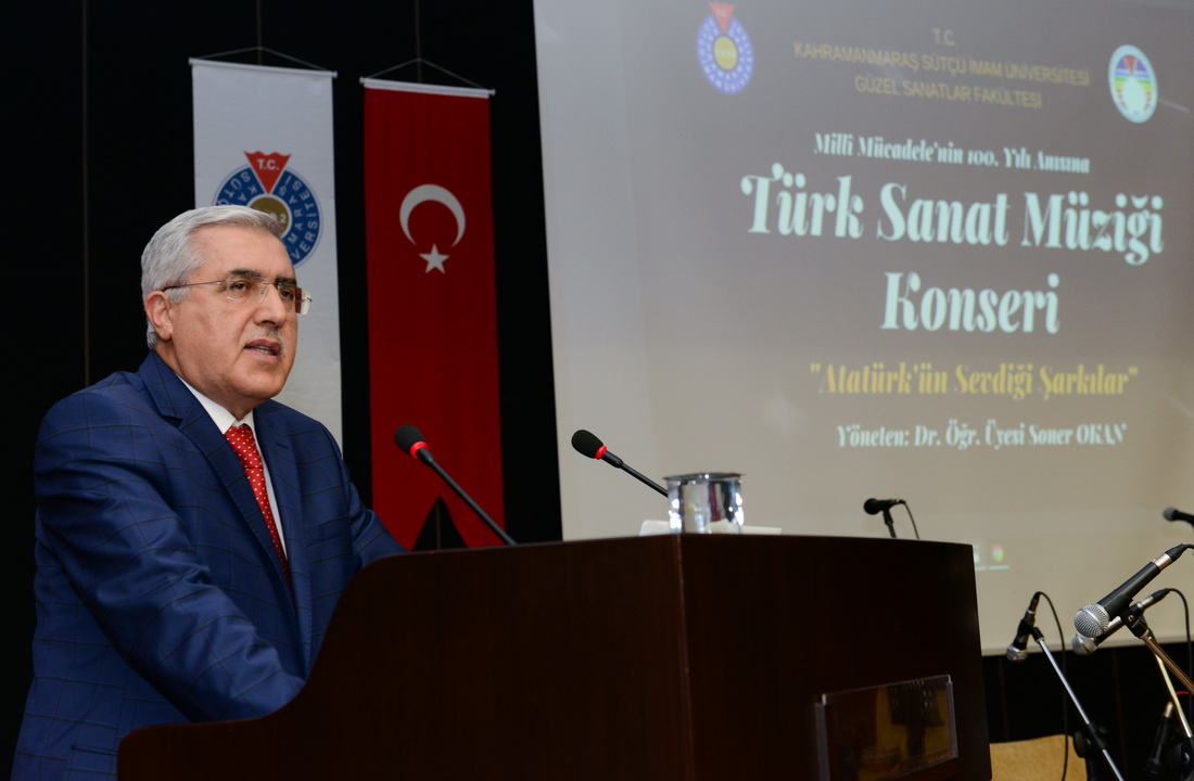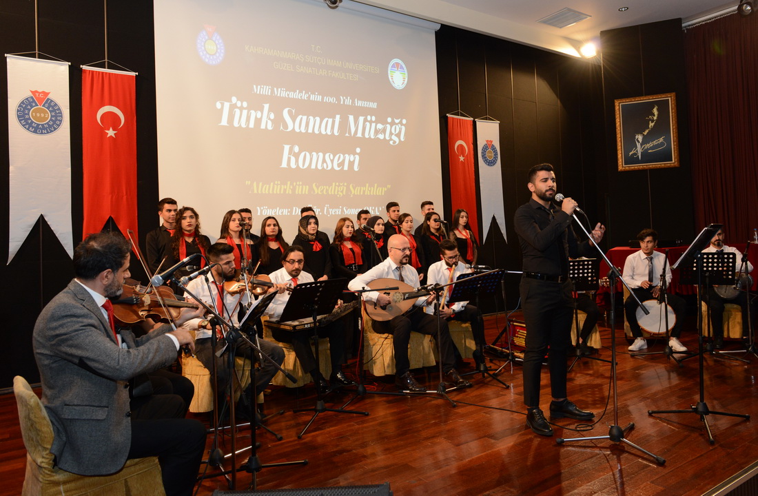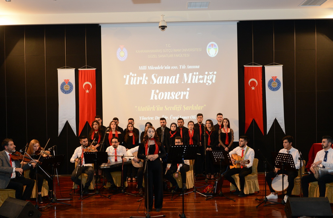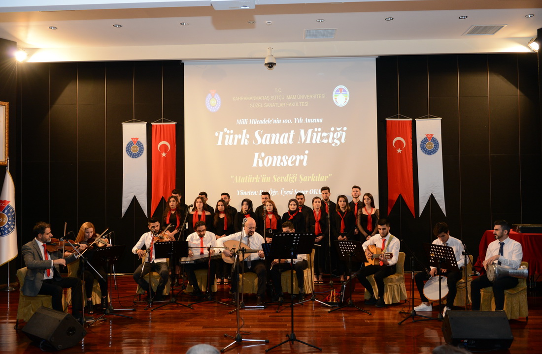 Kahramanmaraş Sütçü İmam Üniversitesi (KSÜ) Rektörlüğü Güzel Sanatlar Fakültesi (GSF) tarafından Milli Mücadele’nin 100. yılı ve Cumhuriyetin ilanının 96. Yılı kutlamaları kapsamında Atatürk’ün sevdiği şarkılardan oluşan Türk Sanat Müziği Konseri gerçekleştirildi.