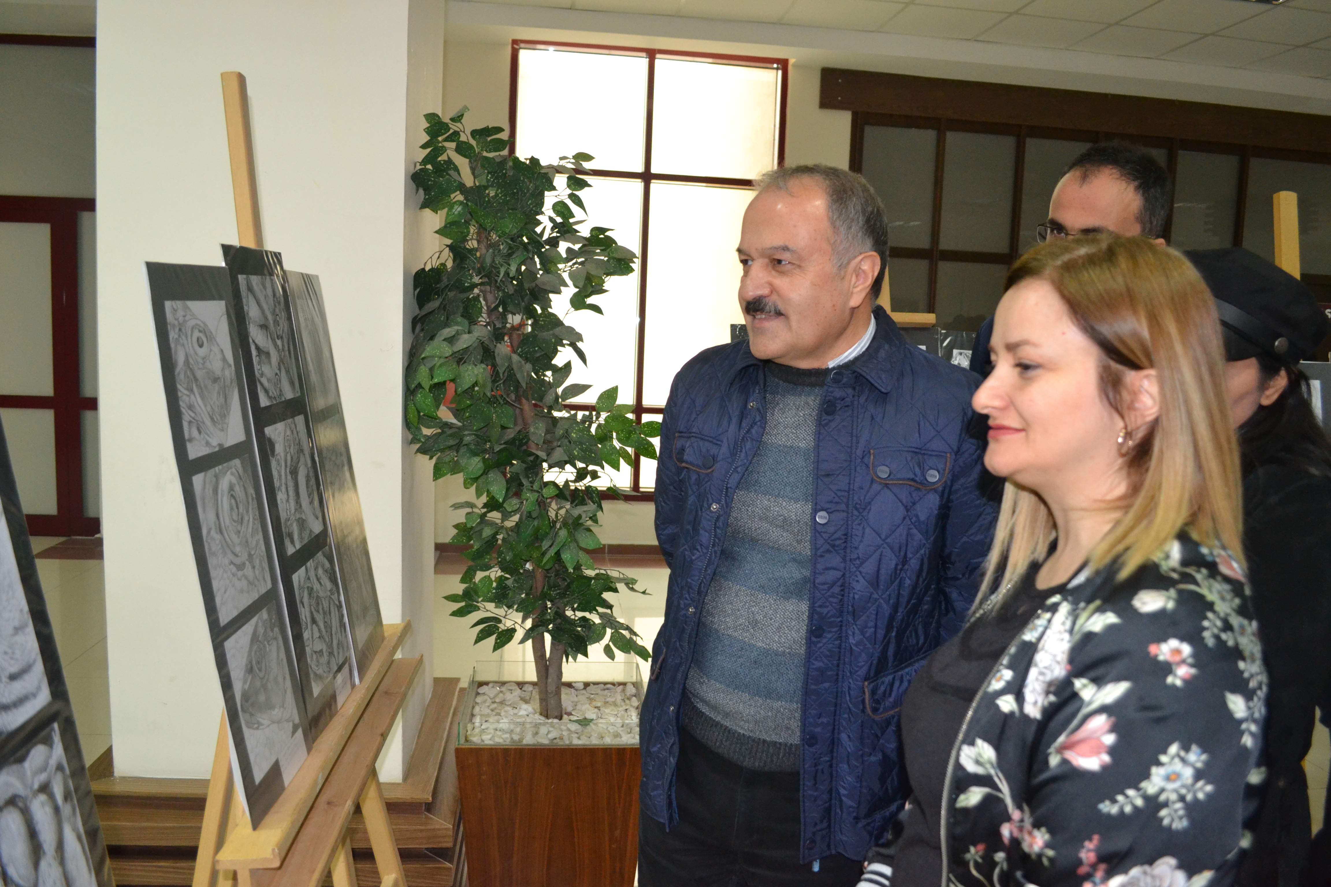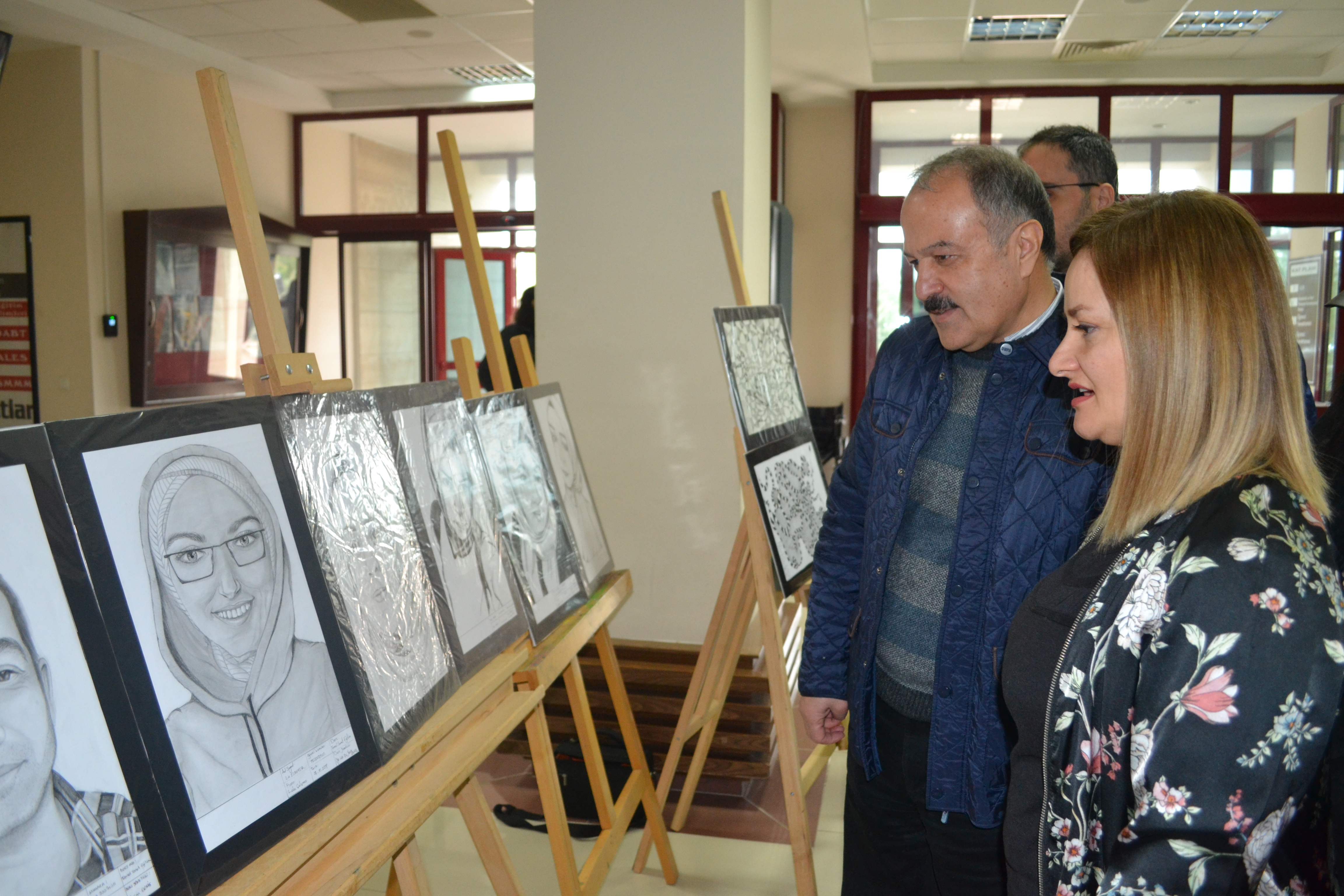 Serginin açılışı Güzel Sanatlar Fakültesi Dekanı Prof. Dr. Mehmet ÖZKARCI ile Fakültemiz Öğretim Elemanları ve öğrencilerimiz gerçekleştirdi. Sergide yer alan 1.sınıf öğrenci çalışmalarını çok beğendiğini ifade eden Prof. Dr. Mehmet ÖZKARCI serginin hazırlanmasında emeği geçen hocamızı ve öğrencilerimizi tebrik ederek, resimler hakkında öğrencilerimizden bilgi aldı.