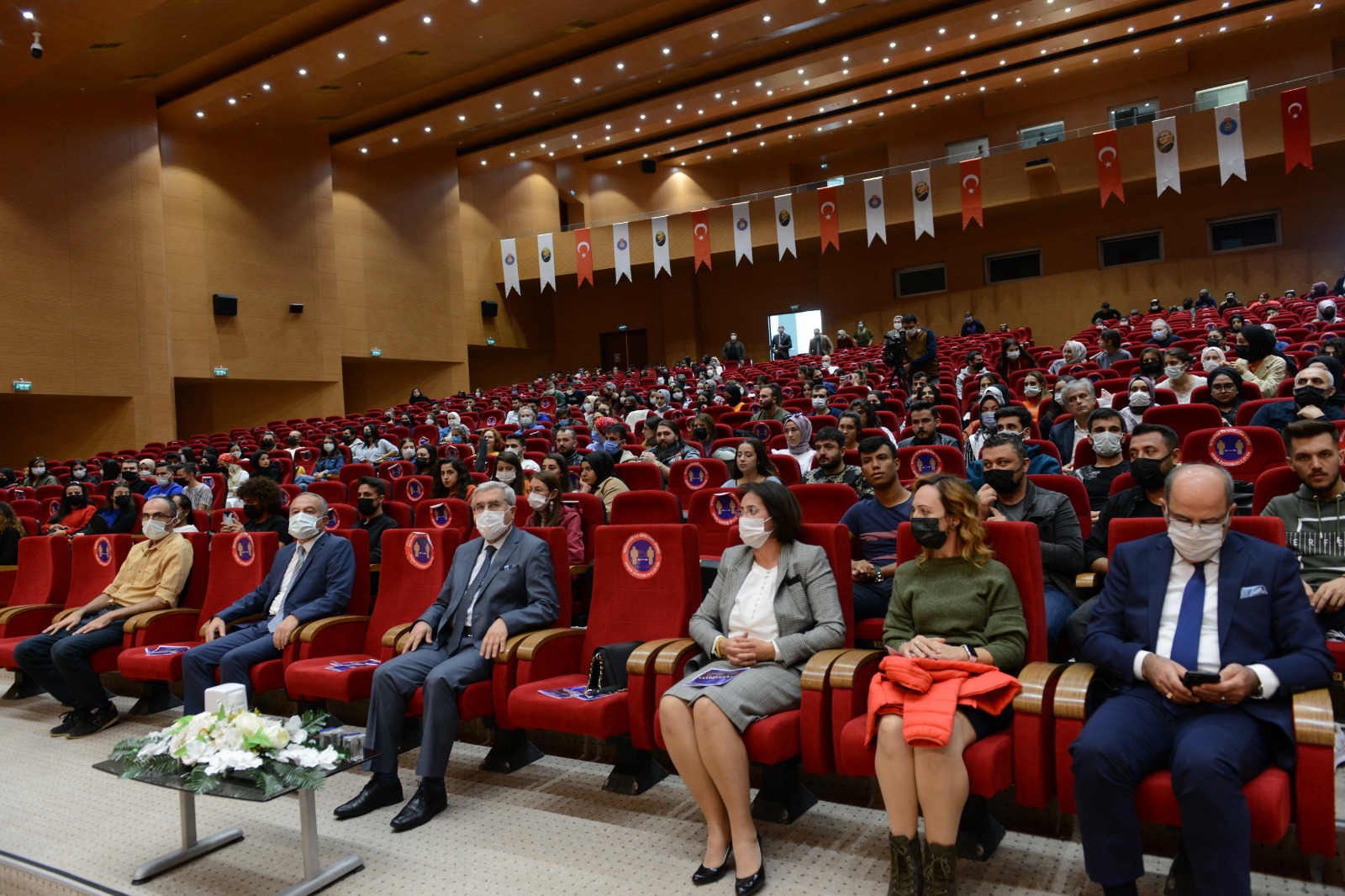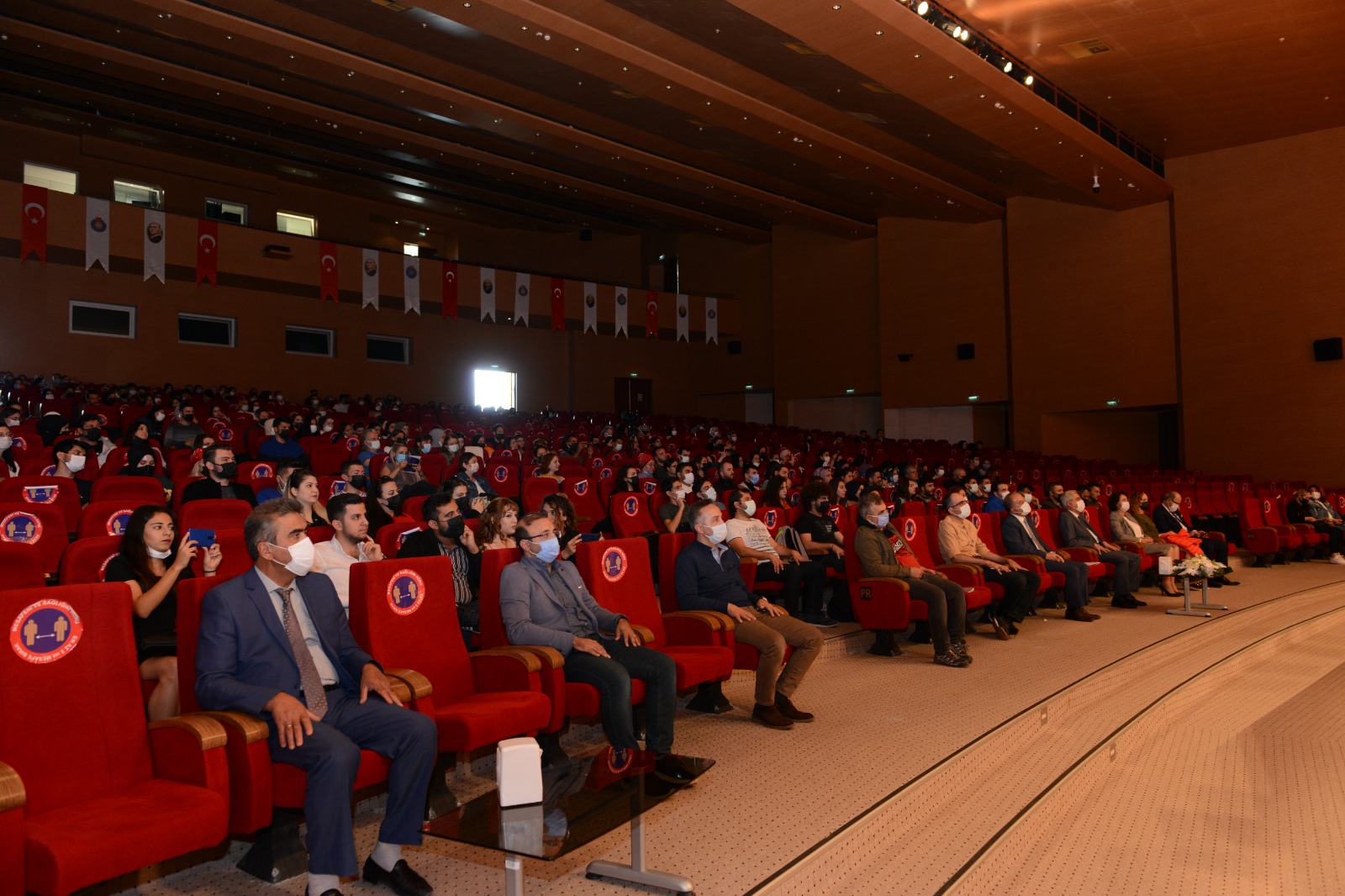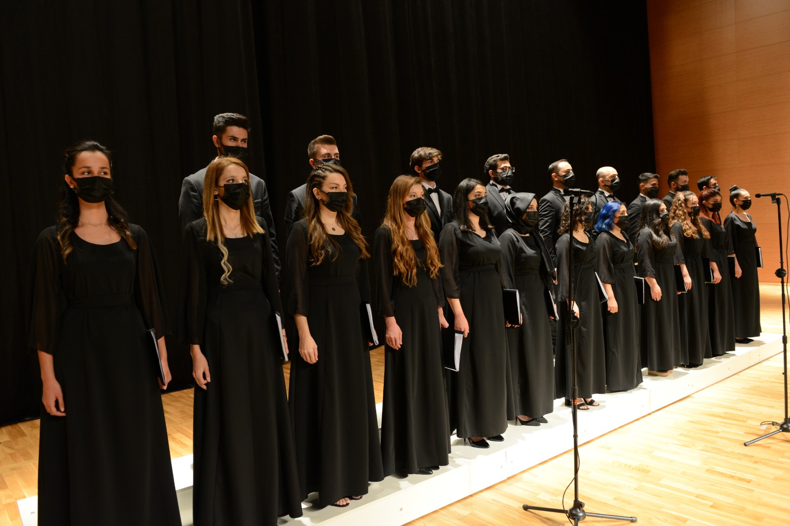 Açılış konuşmalarının ardından Dr. Öğretim Üyesi Ezgi Tekgül’ün yönettiği öğrencilerden oluşan koro İstiklal Marşı’mızı okudu. Koroya Piyanoda Öğretim Görevlisi Dr. Arzu Mustafayeva, Trompette Emirhan Taşkırmaz eşlik etti.