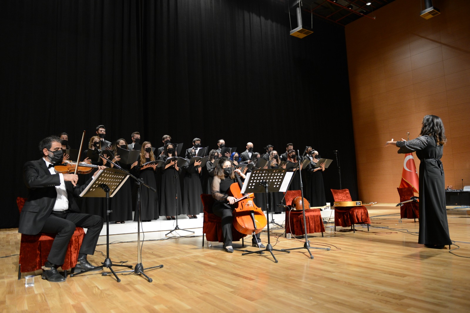 Koro daha sonra ‘Atatürk Marşı’, ‘Toprağın Altına Bir Tohum Girer’, ‘Milli Egemenlik ve Barış Şarkısı’ ve ‘İleri Marşı’ eserlerini icra etti.