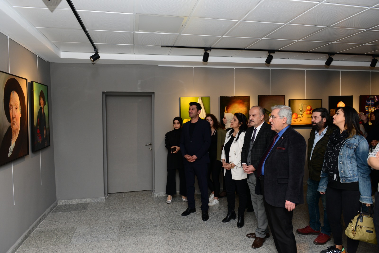 GSF Dr. Öğretim Üyesi Mehmet Aksoy koordinesinde 3. sınıf öğrencilerinin Temel Sanat Atölyesi çalışmalarından oluşan resimlerin yer aldığı sergiyi gezen Rektör Can, eser sahiplerinden çalışmalara ilişkin bilgi aldı.