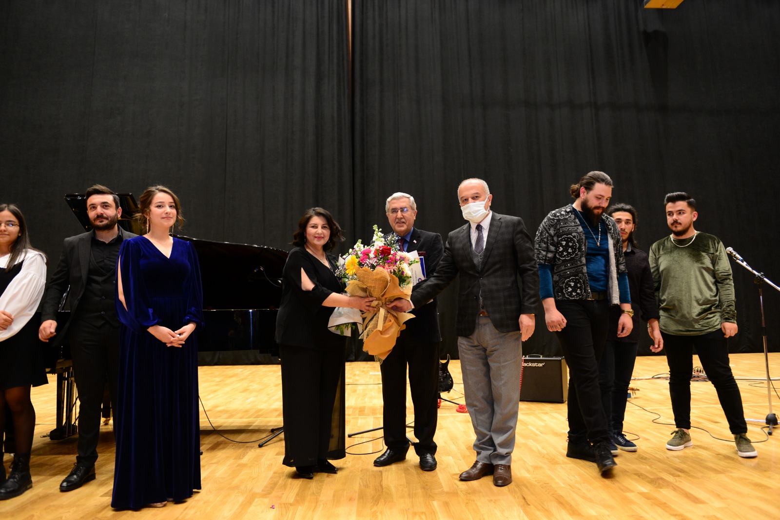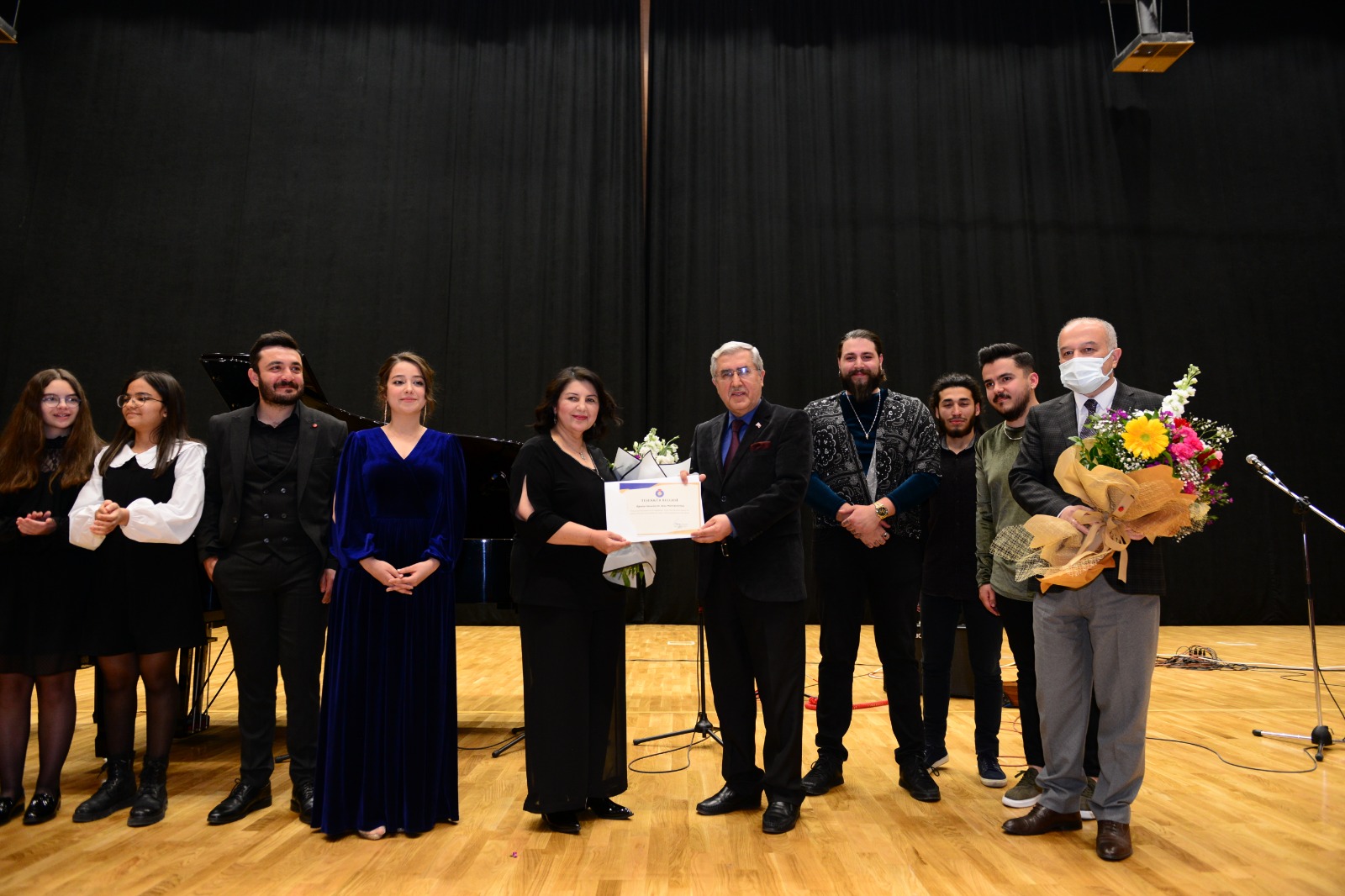 Dinleyenlerin beğeniyle takip ettiği piyano dinletisinin ardından Rektör Prof. Dr. Niyazi Can ve protokol üyeleri tarafından çiçek ve teşekkür belgesi takdim edildi.